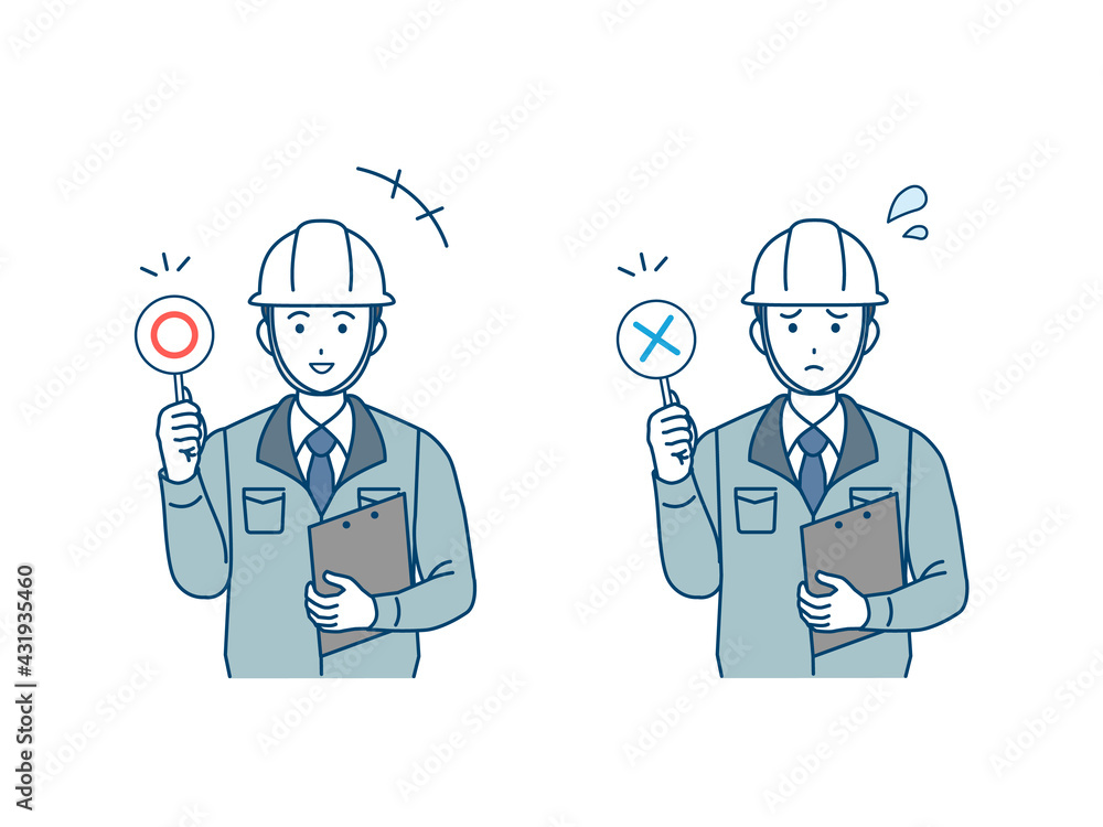 現場監督 建築士 工場長 男性 正解と不正解 問題 イラスト素材 Wall Mural Senryu